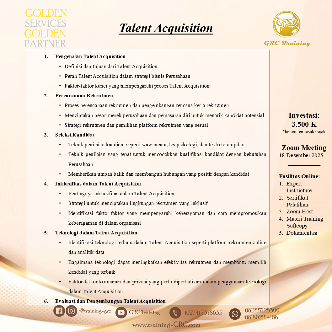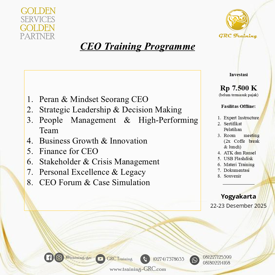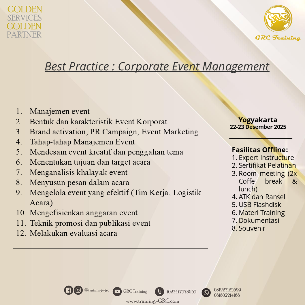 Informasi Training Terbaru oleh PT. GOLDEN REGENCY CONSULTING (GRC Training)