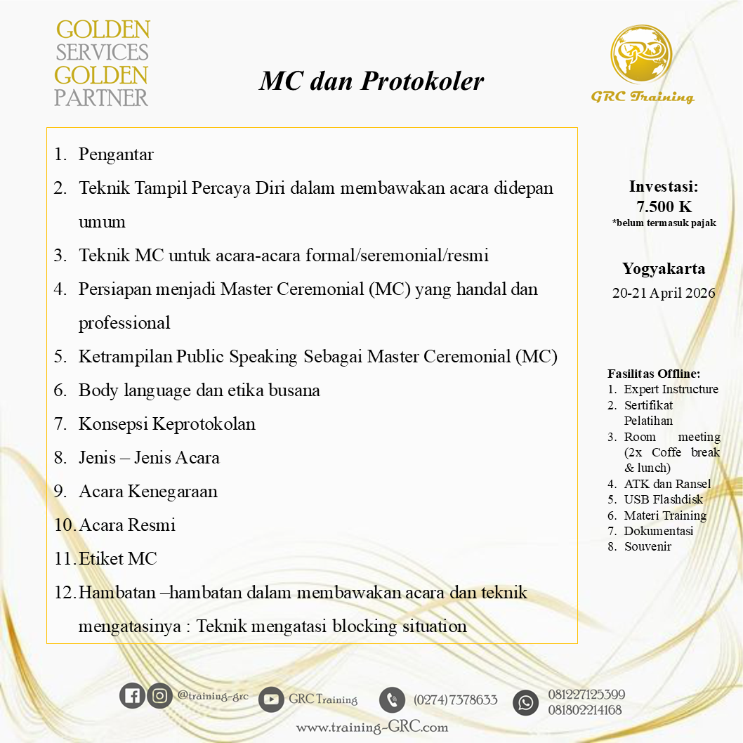 Informasi Training Terbaru oleh PT. GOLDEN REGENCY CONSULTING (GRC Training)